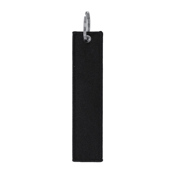 Durable polyester keychain with reinforced edge stitching in a matching color for a clean and professional finish. Designed with two silver metal rings, including a main ring ideal for securely holding keys, making it a practical and stylish promotional accessory.