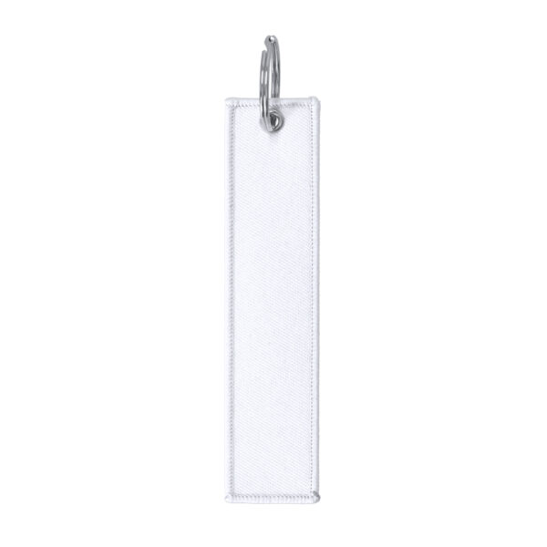 Keyring with durable polyester straps, specially designed for sublimation printing. Made-to-order item, ideal for full customization with logos, designs, or branding.